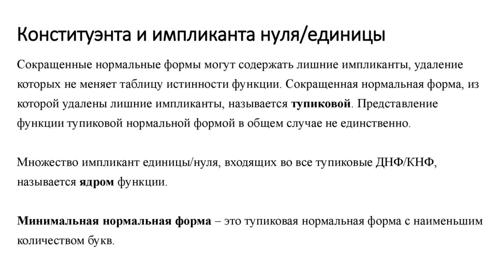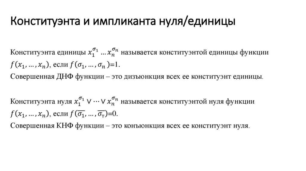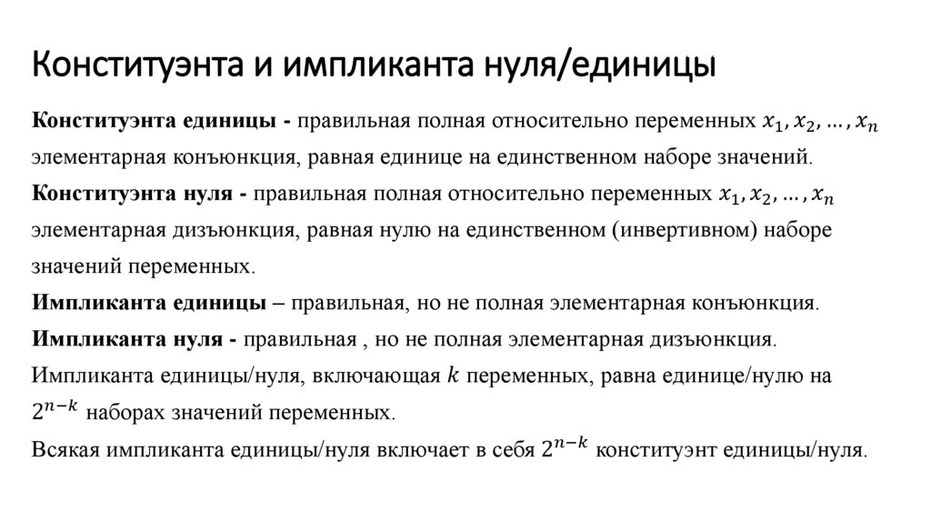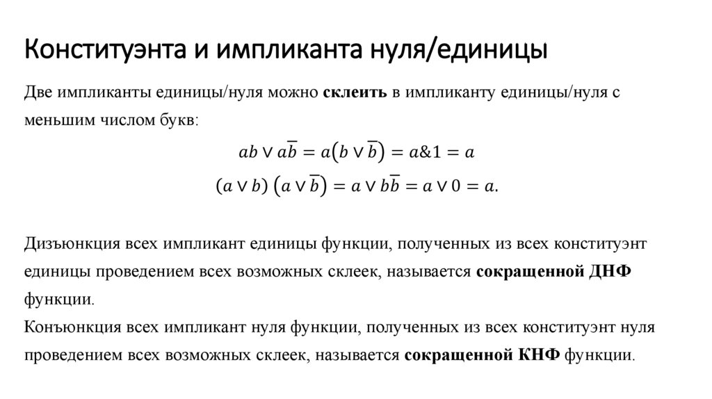 Конституэнта и импликанта нуля/единицы