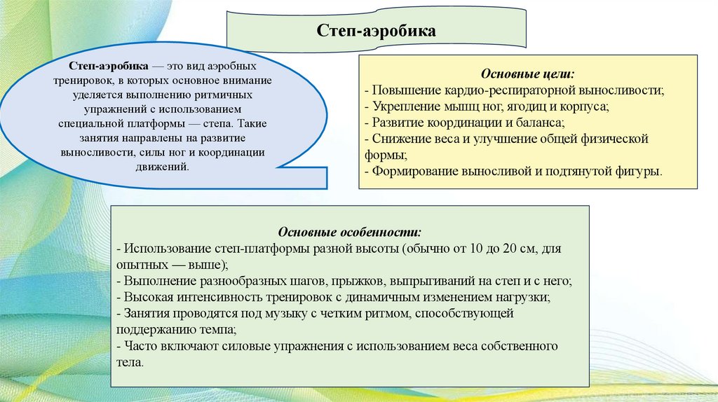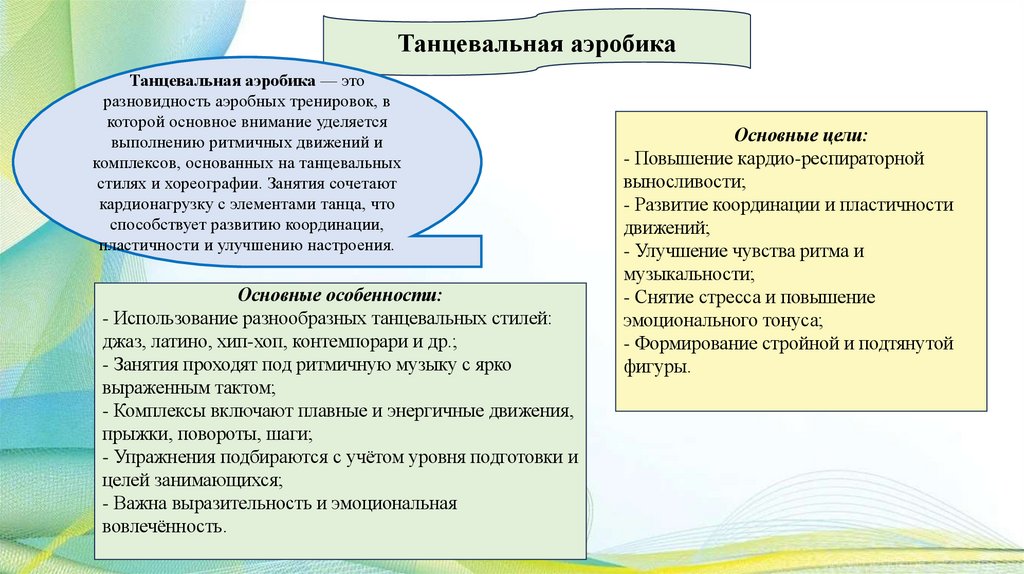 Лекция 12.Общая характеристика различных видов и направлений оздоровительной аэробики