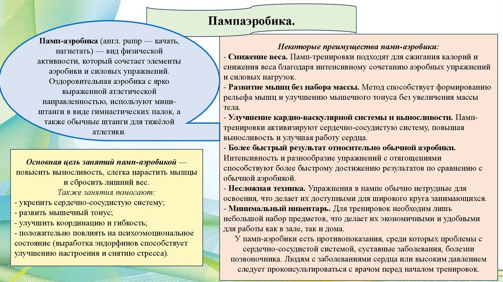 Пампаэробика.Памп-аэробика (англ. pump — качать,