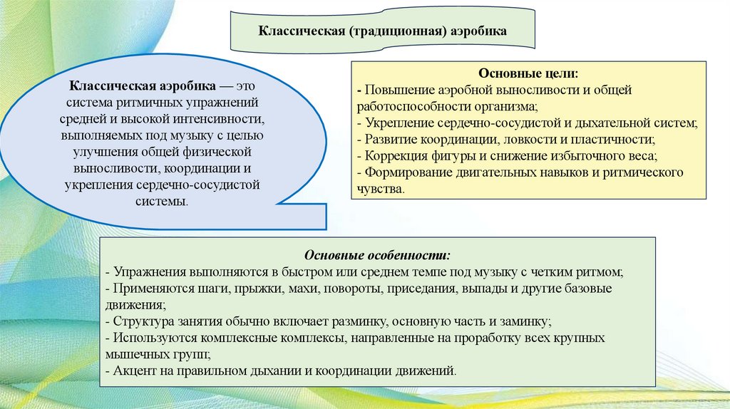 Классическая (традиционная) аэробикаКлассическая аэробика — это