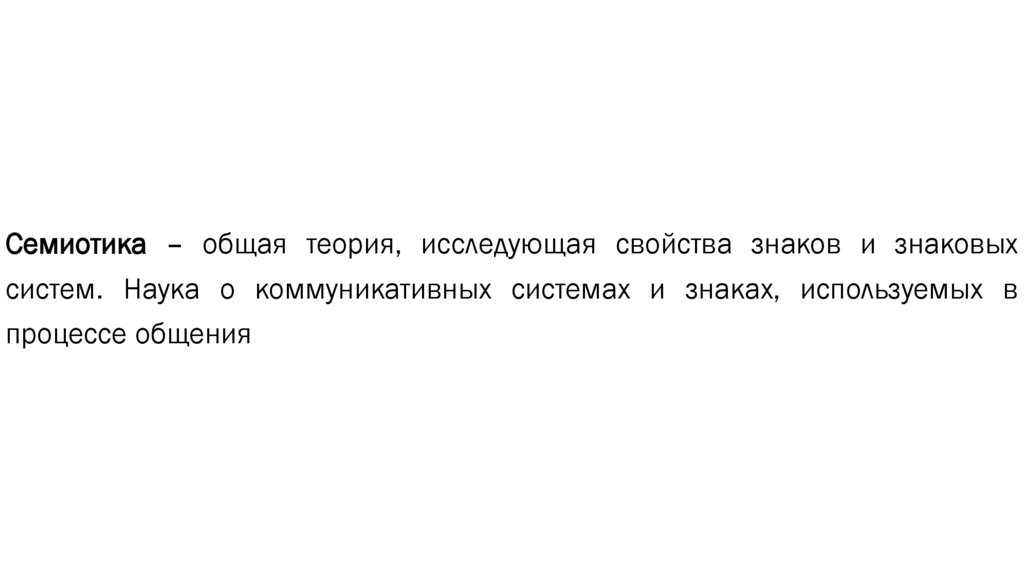 Семиотика – общая теория, исследующая свойства знаков и знаковыхсистем. Наука о коммуникативных системах и знаках, используемых в