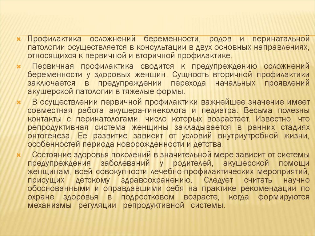 Первичная и вторичная профилактика при акушерской патологии