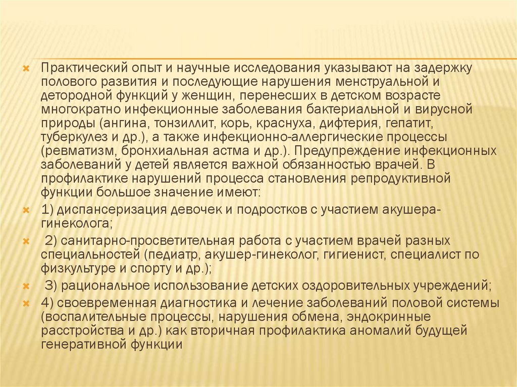 профилактике нарушений процесса становления репродуктивной