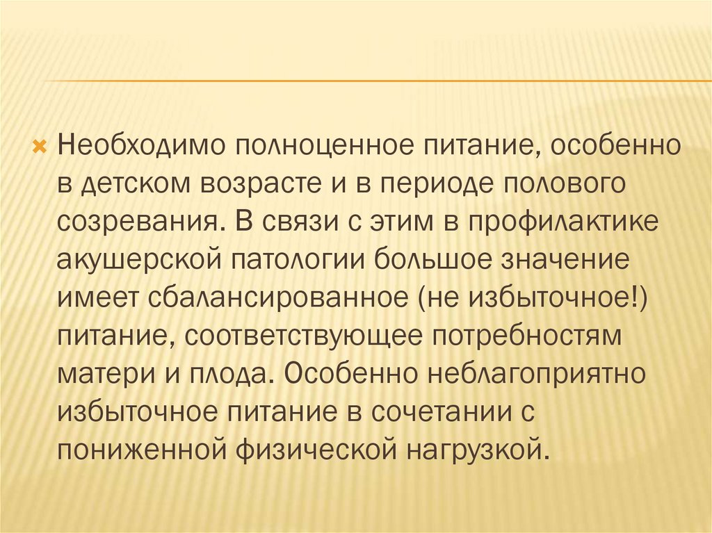 Необходимо полноценное питание, особеннов детском возрасте и в периоде полового