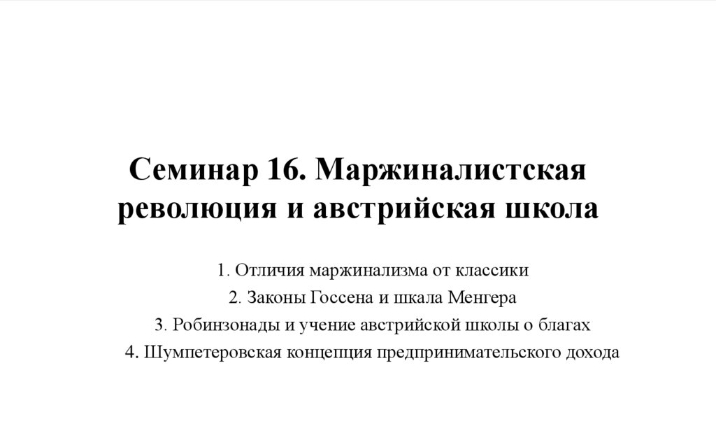 1. Семинар 16. Маржиналистская революция и австрийская школа