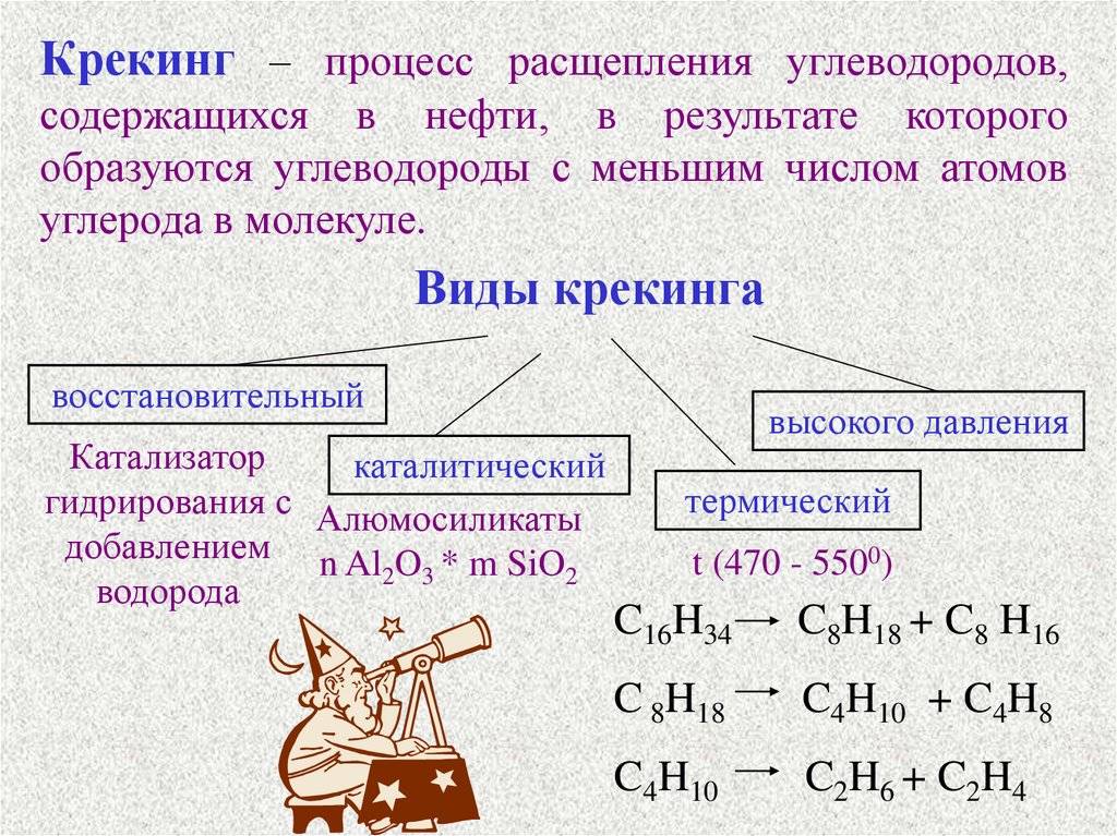 Крекинг – процесс расщепления углеводородов,содержащихся в нефти, в результате которого