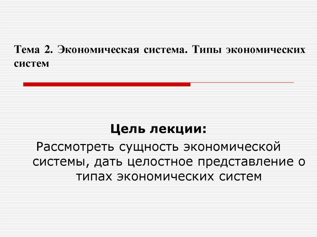 1. Тема 2. Экономическая система. Типы экономических систем