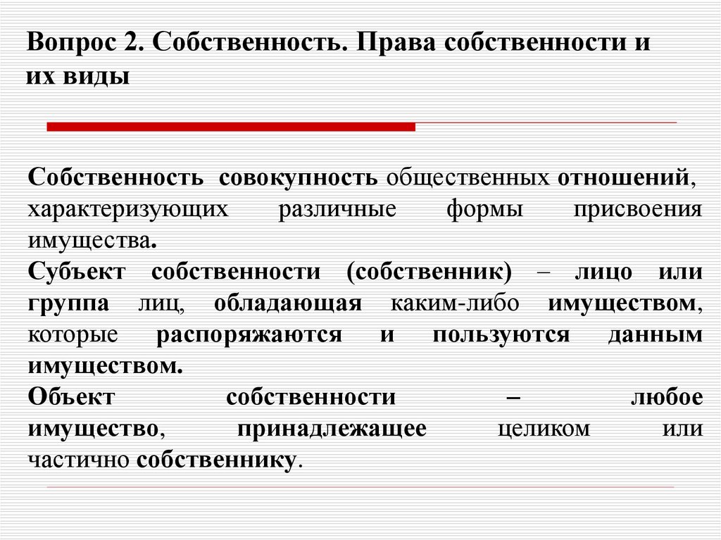 2. Собственность. Права собственности и их