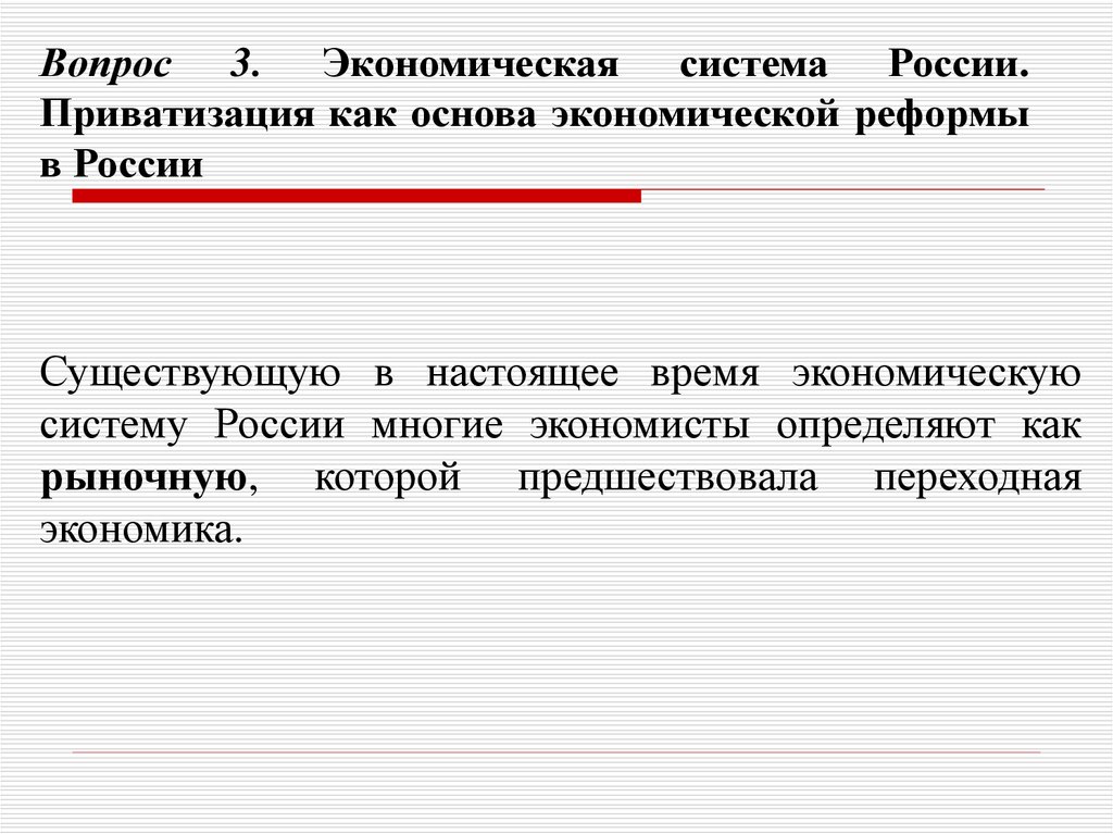 Вопрос 3. Экономическая система России.Приватизация как основа экономической реформы