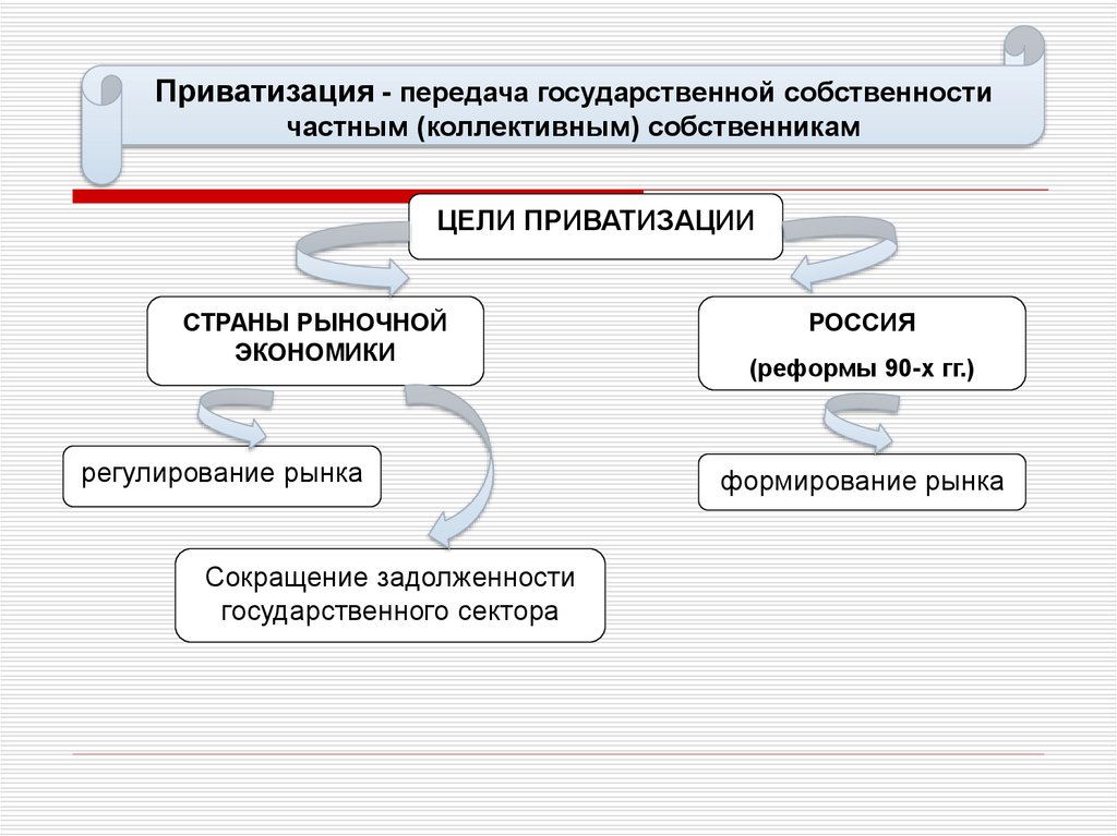 Приватизация - передача государственной собственностичастным (коллективным) собственникам
