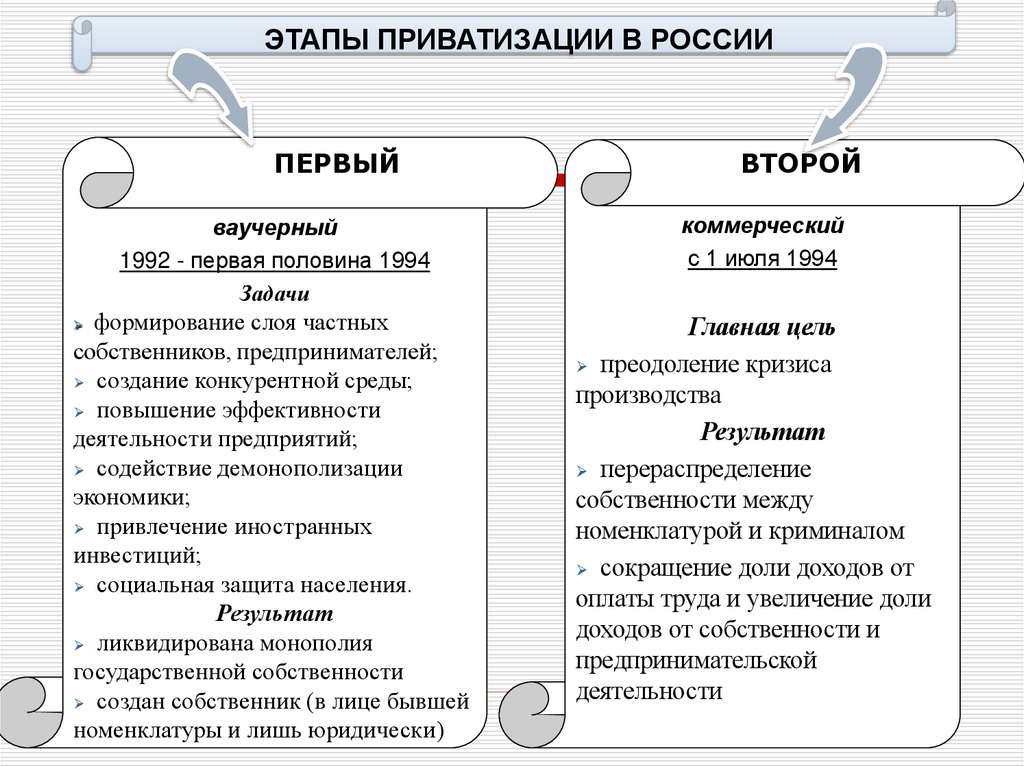 ЭТАПЫ ПРИВАТИЗАЦИИ В РОССИИПЕРВЫЙ