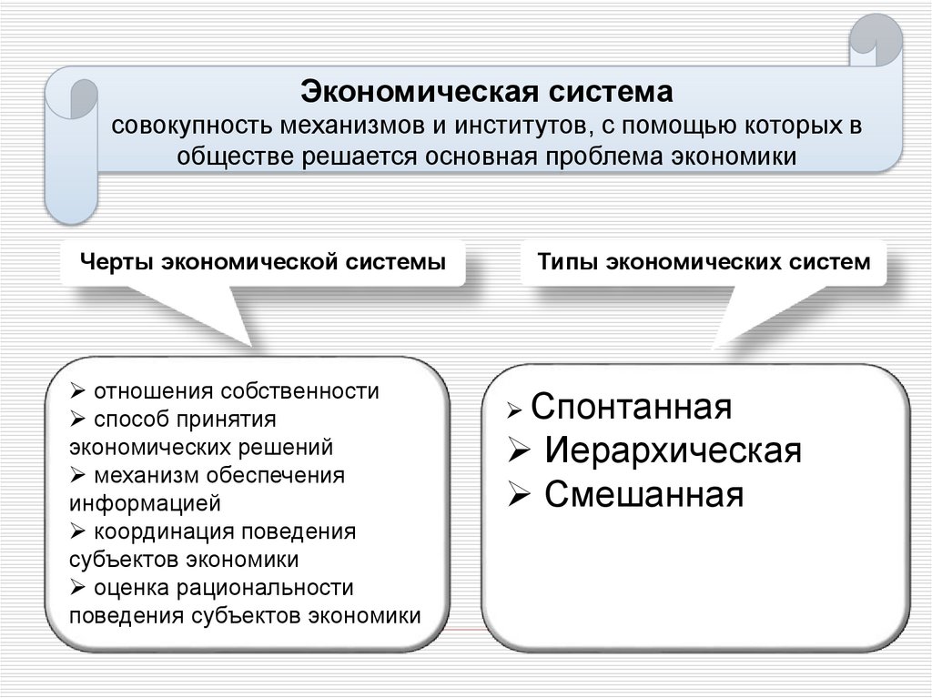 Черты экономической системы