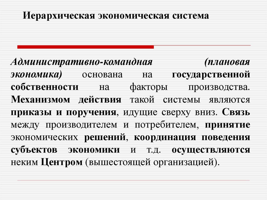 Иерархическая экономическая системаАдминистративно-командная