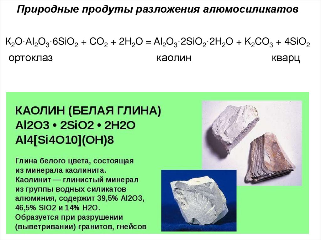 3) глины – каолин Al2O3·2SiО2·2H2O и мергели (содержащие