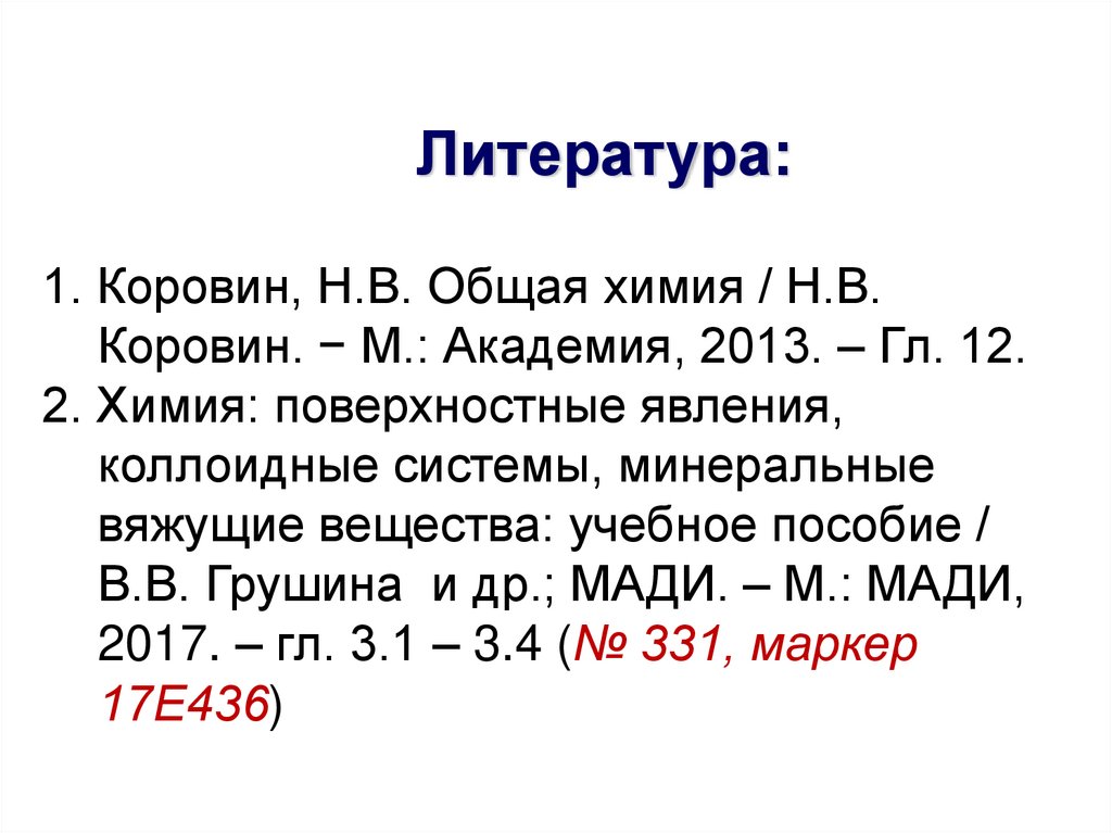 Литература:1. Коровин, Н.В. Общая химия / Н.В.