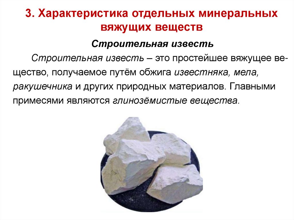 3. Характеристика отдельных минеральныхвяжущих веществ