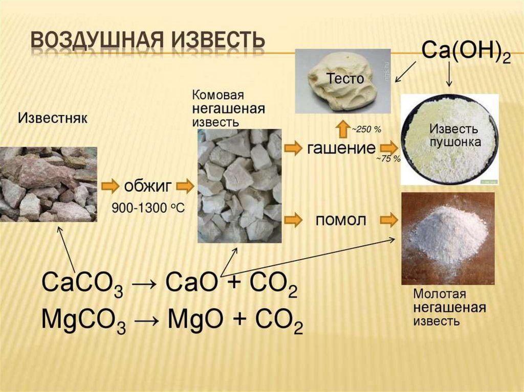 Строительная известь – это простейшее вяжущее вещество, получаемое путём обжига известняка, мела,