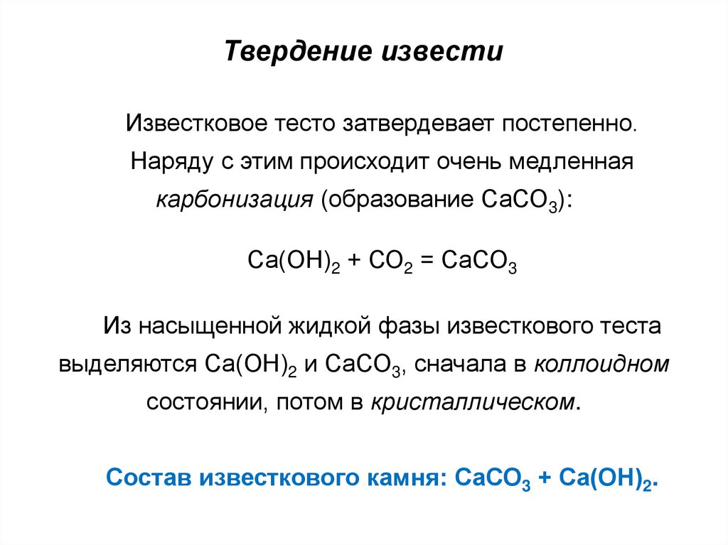 Твердение известиИзвестковое тесто затвердевает постепенно.