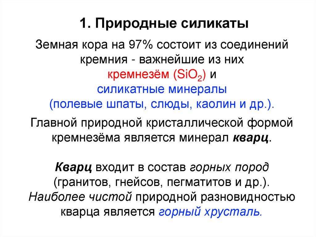 1. Природные силикатыЗемная кора на 97% состоит из соединений