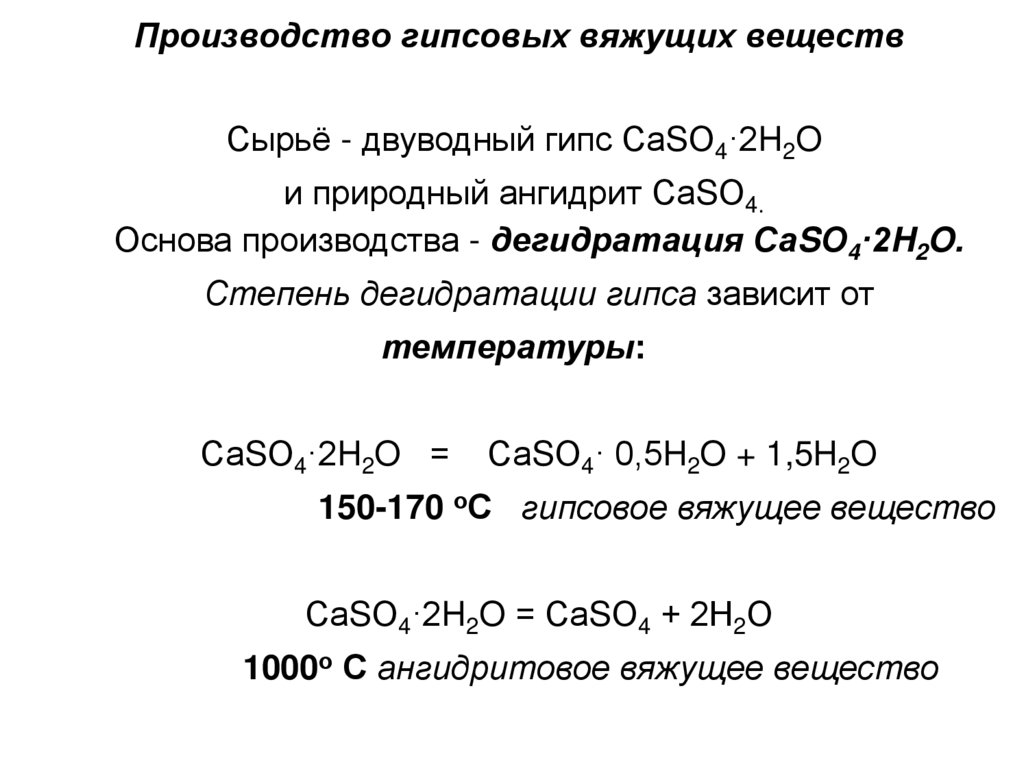 Производство гипсовых вяжущих веществСырьё - двуводный гипс СаSО4·2H2O