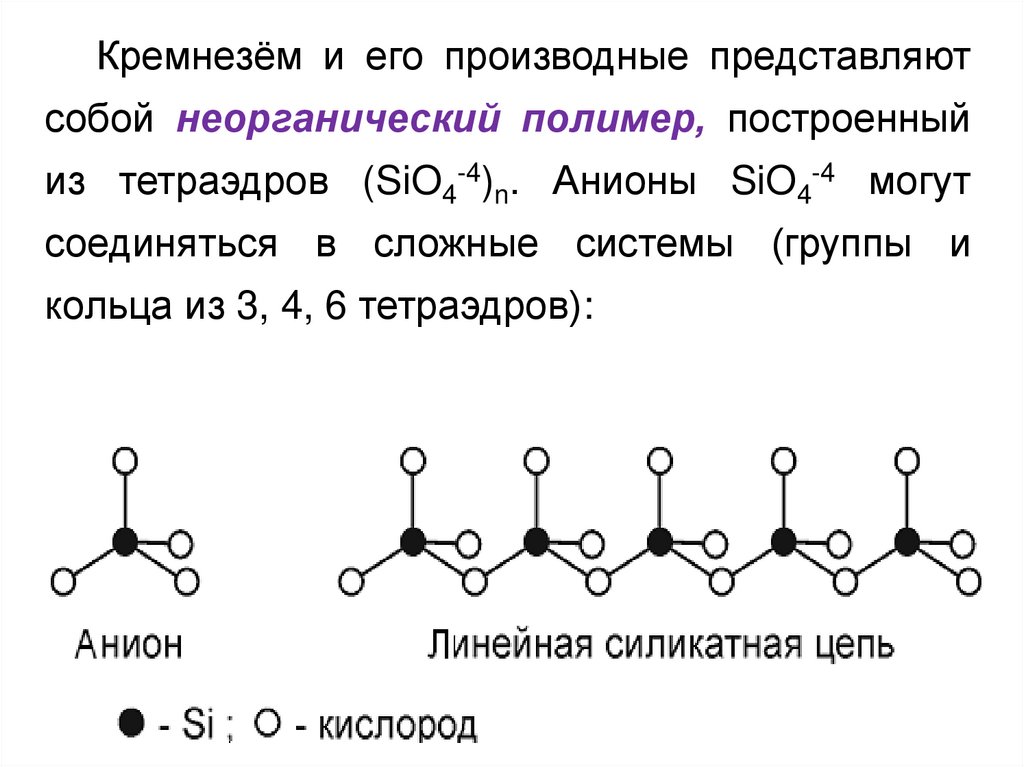 Кремнезём и его производные представляютсобой неорганический полимер, построенный