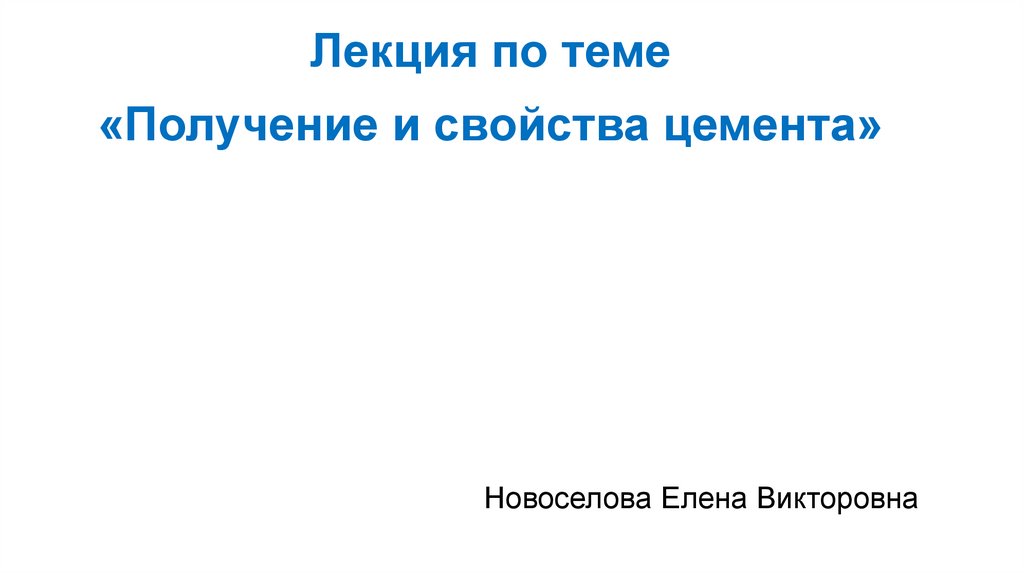 Лекция по теме«Получение и свойства цемента»