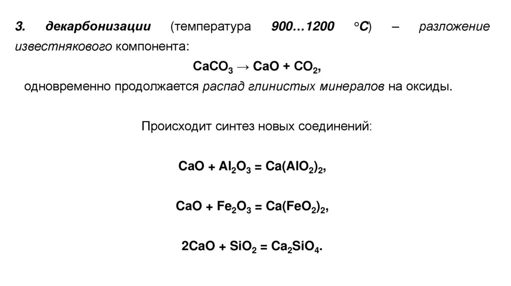 процесс образования Са3(АlО3)2, Ca2SiO4 и идёт синтез Ca4(AlO3)2(FeO2)2 :