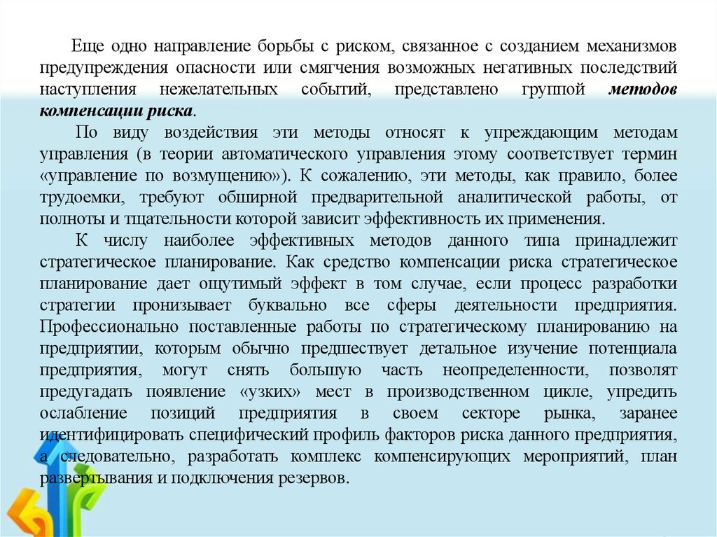 деятельности предприятия, риск можно сделать контролируемым и обеспечить