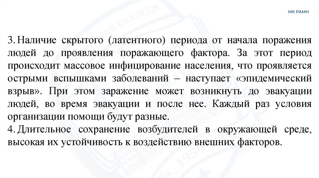4. Длительное сохранение возбудителей в окружающей среде,