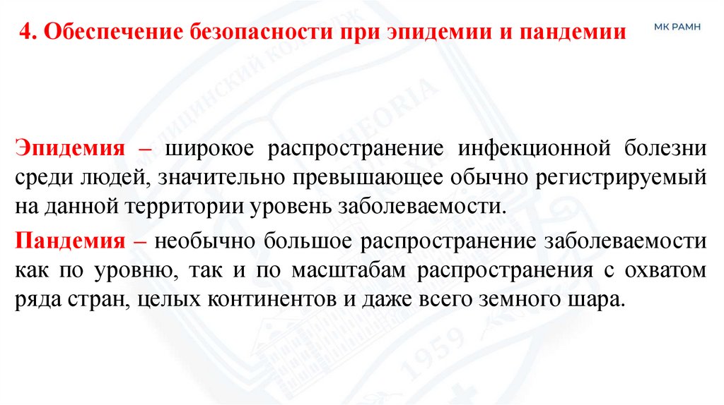 4. Обеспечение безопасности при эпидемии и пандемии.