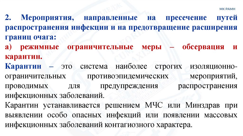 2. Мероприятия, направленные на пресечение путейраспространения инфекции и на предотвращение расширения