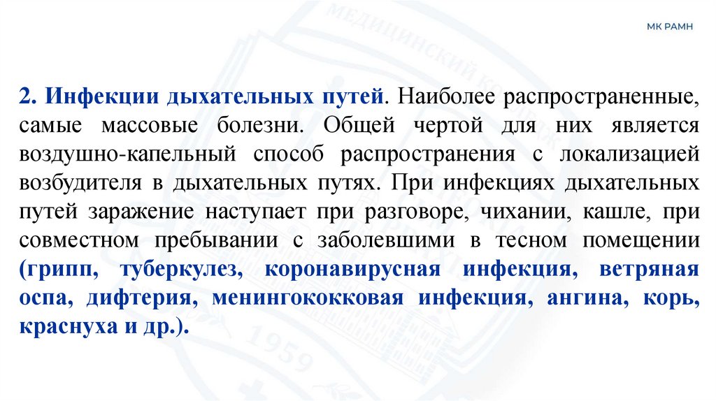2. Инфекции дыхательных путей. Наиболее распространенные,самые массовые болезни. Общей чертой для них является
