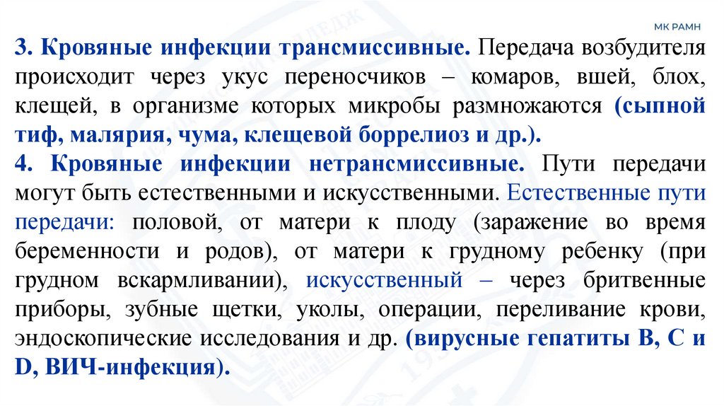 4. Кровяные инфекции нетрансмиссивные. Пути передачи