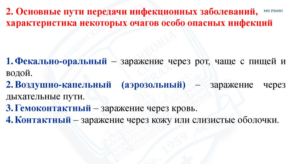 2. Основные пути передачи инфекционных заболеваний,