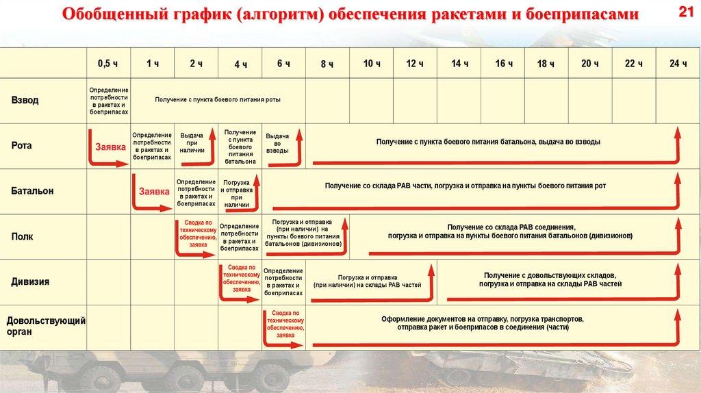 Обобщенный график (алгоритм) обеспечения ракетами и боеприпасами0,5 ч