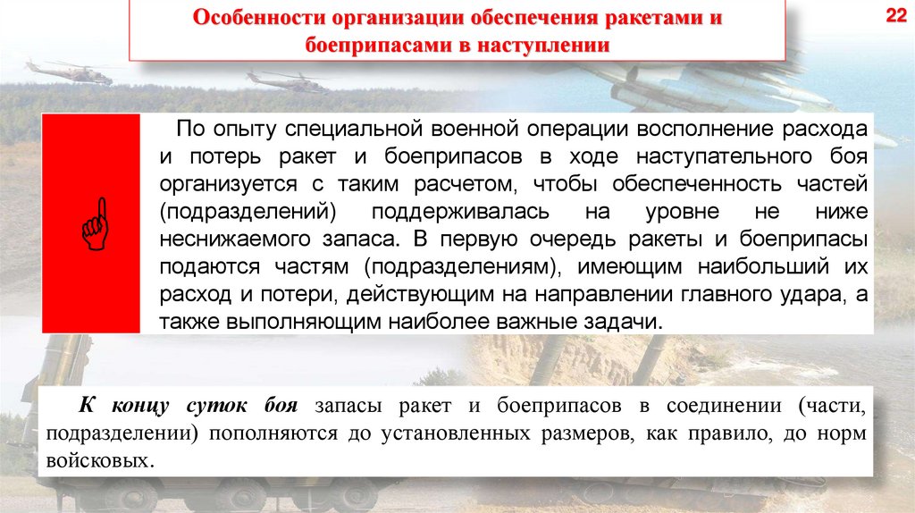 Особенности организации обеспечения ракетами ибоеприпасами в наступлении