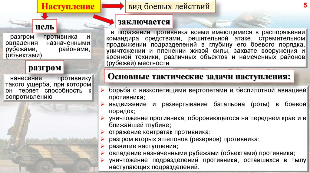 Основные тактические задачи наступления: