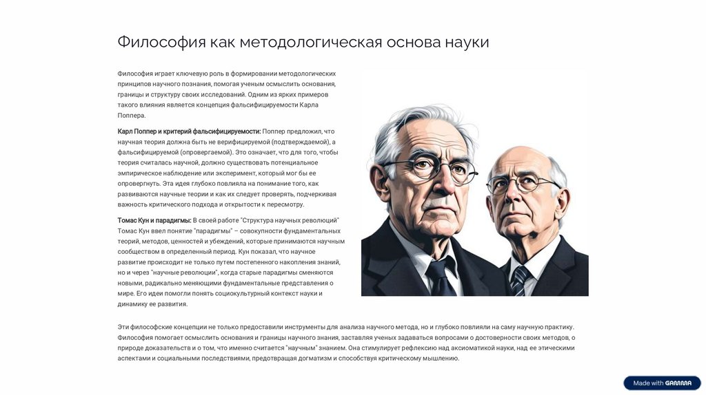 Эти философские концепции не только предоставили инструменты для анализа научного метода, но и глубоко повлияли на саму научную практику.