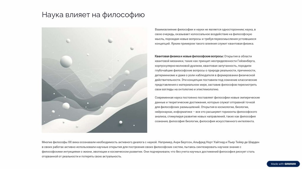 Наука влияет на философиюВзаимовлияние философии и науки не является односторонним; наука, в