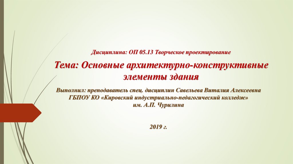 Дисциплина: ОП 05.13 Творческое проектированиеТема: Основные архитектурно-конструктивные