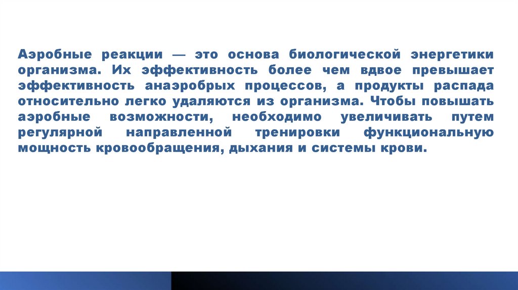Аэробные реакции — это основа биологической энергетикиорганизма. Их эффективность более чем вдвое превышает