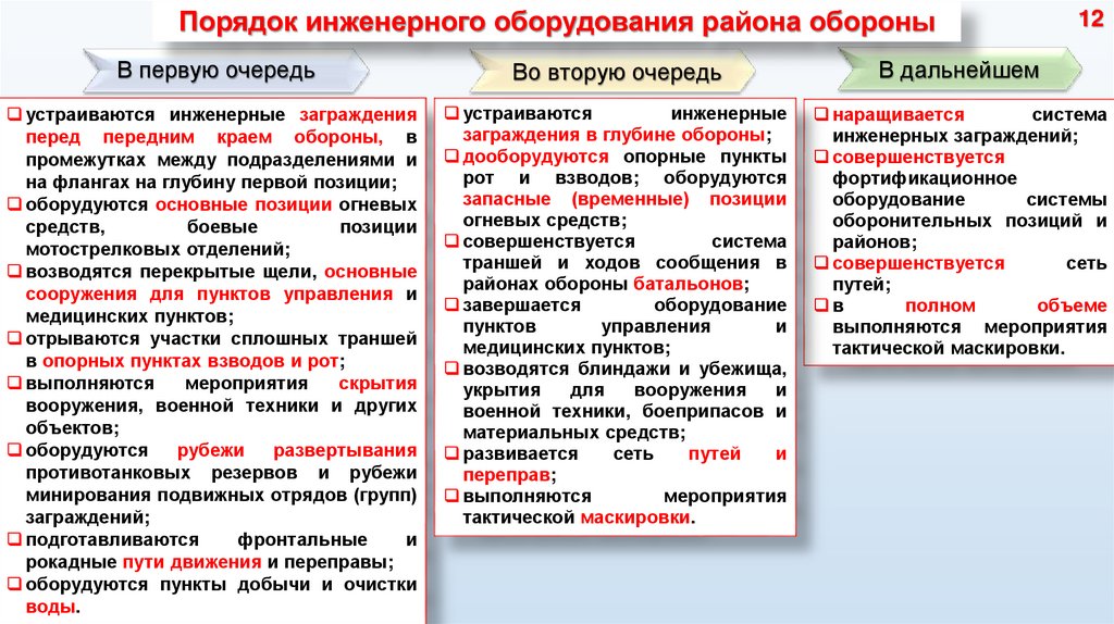 при подготовке к обороне
