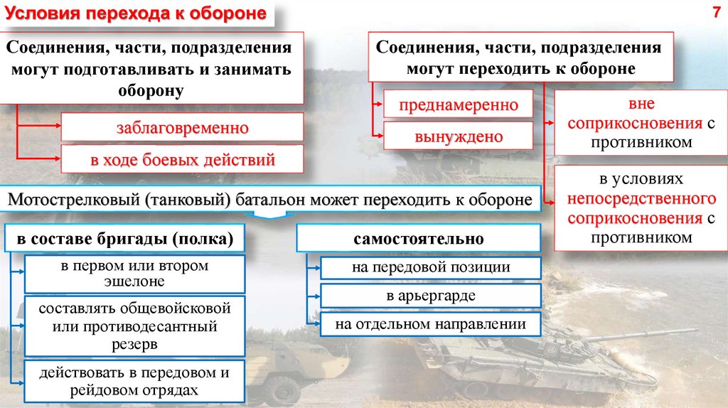 Условия перехода к оборонеСоединения, части, подразделения