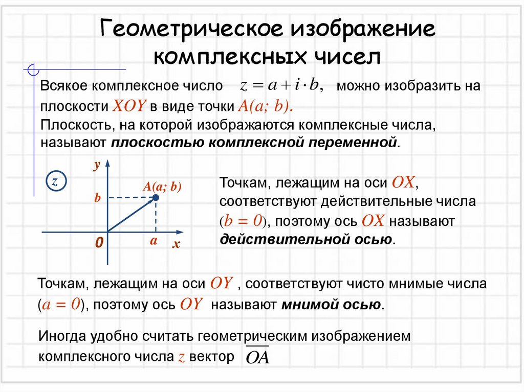 (a = 0), поэтому ось OY называют мнимой осью.