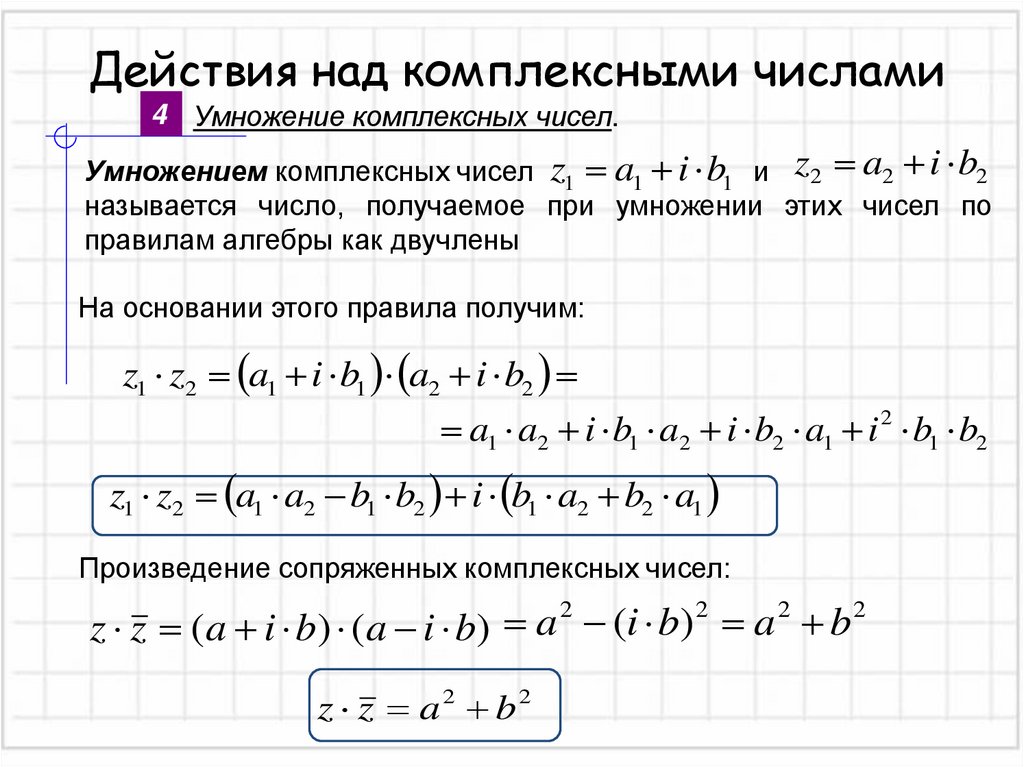 Действия над комплексными числами4 Умножение комплексных чисел.