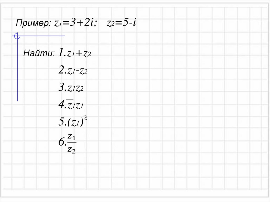 Пример: z1=3+2i;Найти: 1.z1+z2