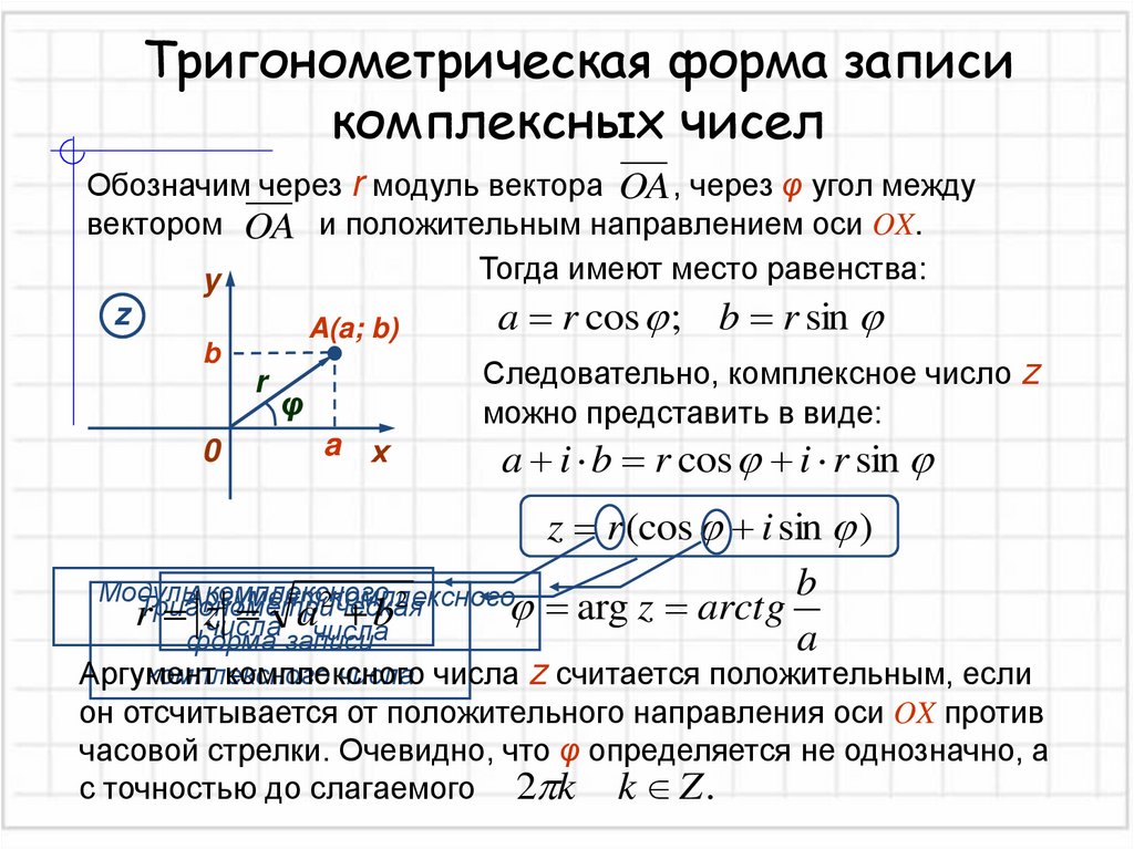 комплексного числа z вектор OA