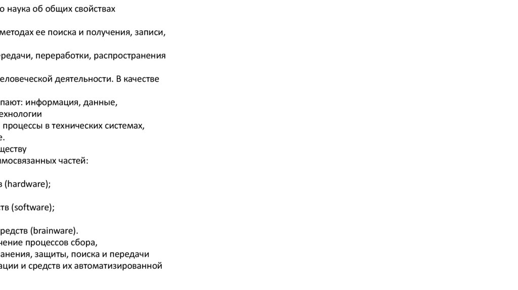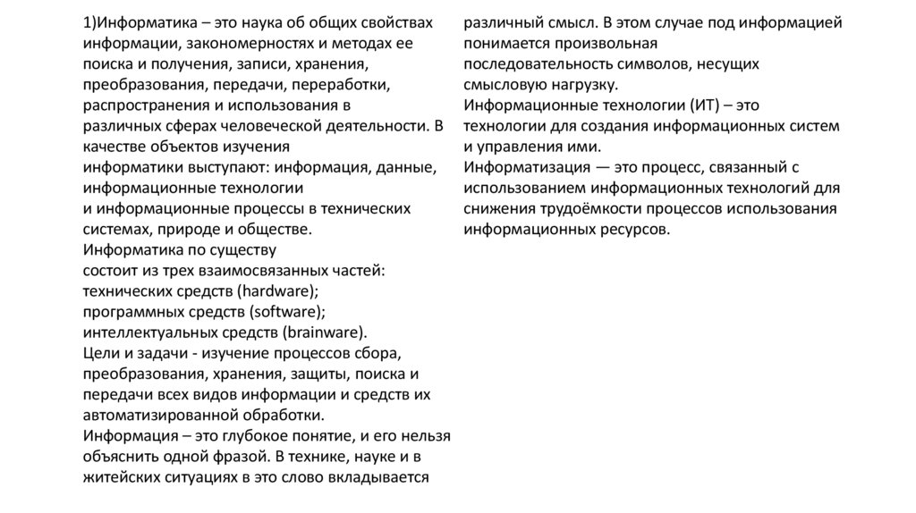 1)Информатика – это наука об общих свойствахинформации, закономерностях и методах ее