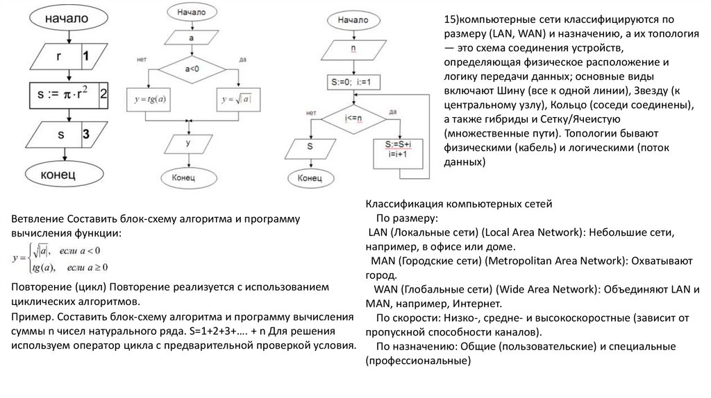15)компьютерные сети классифицируются поразмеру (LAN, WAN) и назначению, а их топология