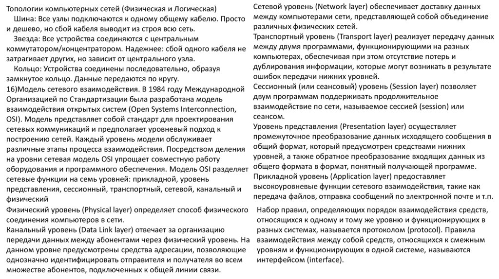 16)Модель сетевого взаимодействия. В 1984 году Международной Сессионный (или сеансовый) уровень (Session layer) позволяет